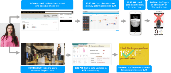 - Real-time cross-channel profile updates: The CDP enables dynamic updates to the customer profile with every interaction, both online and offline. Actionable algorithms enable real-time audience activation so marketers can deliver journey-based hyper-personalization in the moment.