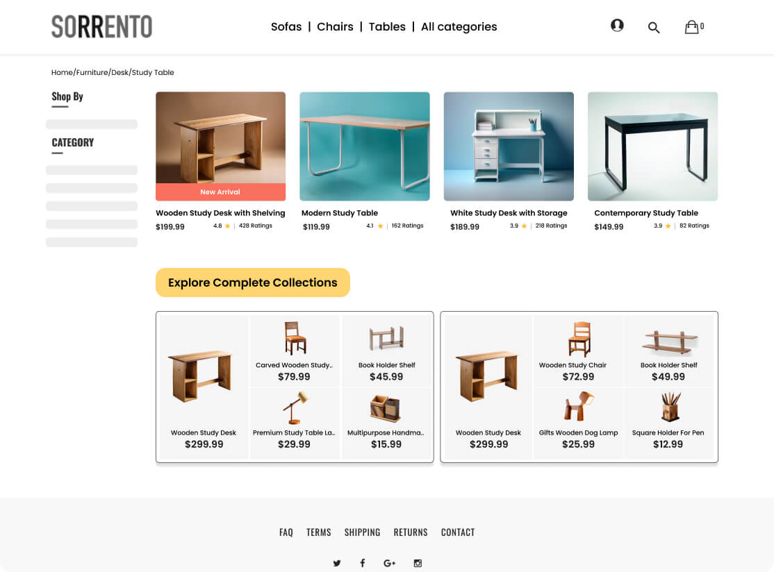 Create curated collections grouped by material (e.g., wood, metal) or color palette (e.g., neutrals, bold colors). These collections help customers easily find pieces that blend with their decor or build a cohesive look from scratch. They also encourage exploration, introducing shoppers to new styles that match their preferences.