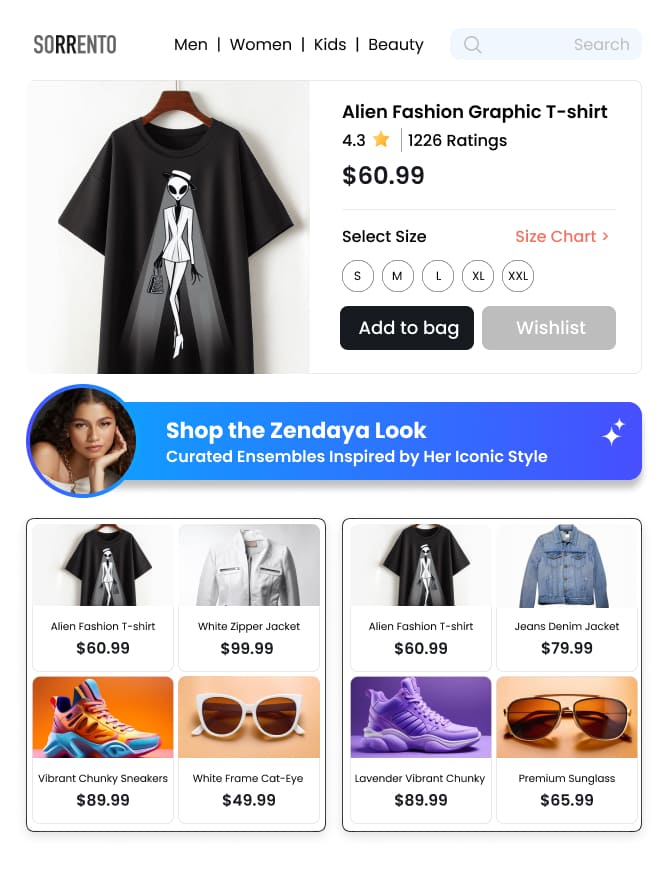 Enhances engagement and conversion rates by making shoppers feel understood and catered to with tailored product ensembles.