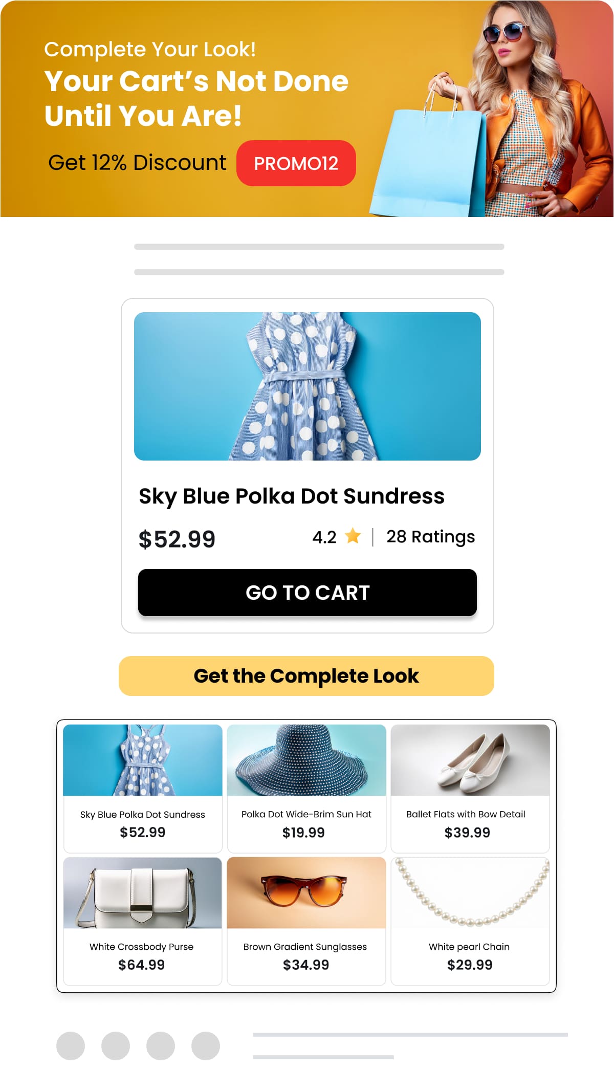 Use personalized ensembles in email campaigns to remind shoppers of items they viewed or left in their cart, along with suggestions for complementary products.
