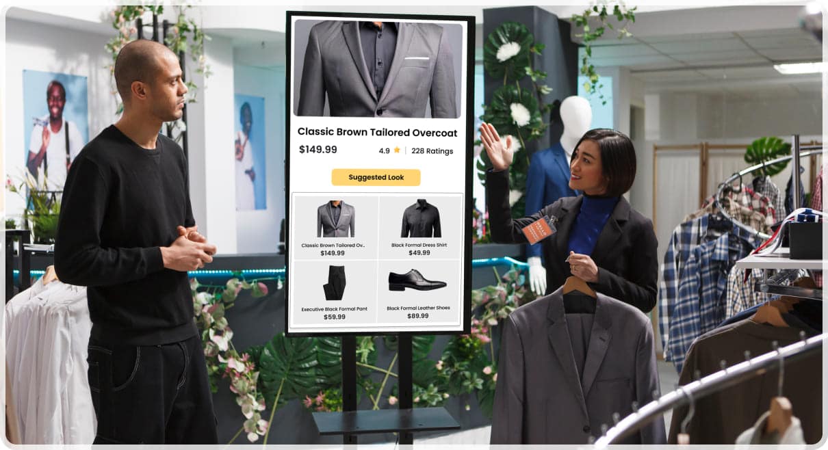 Enhance in-store engagement by showcasing curated ensembles through digital displays.