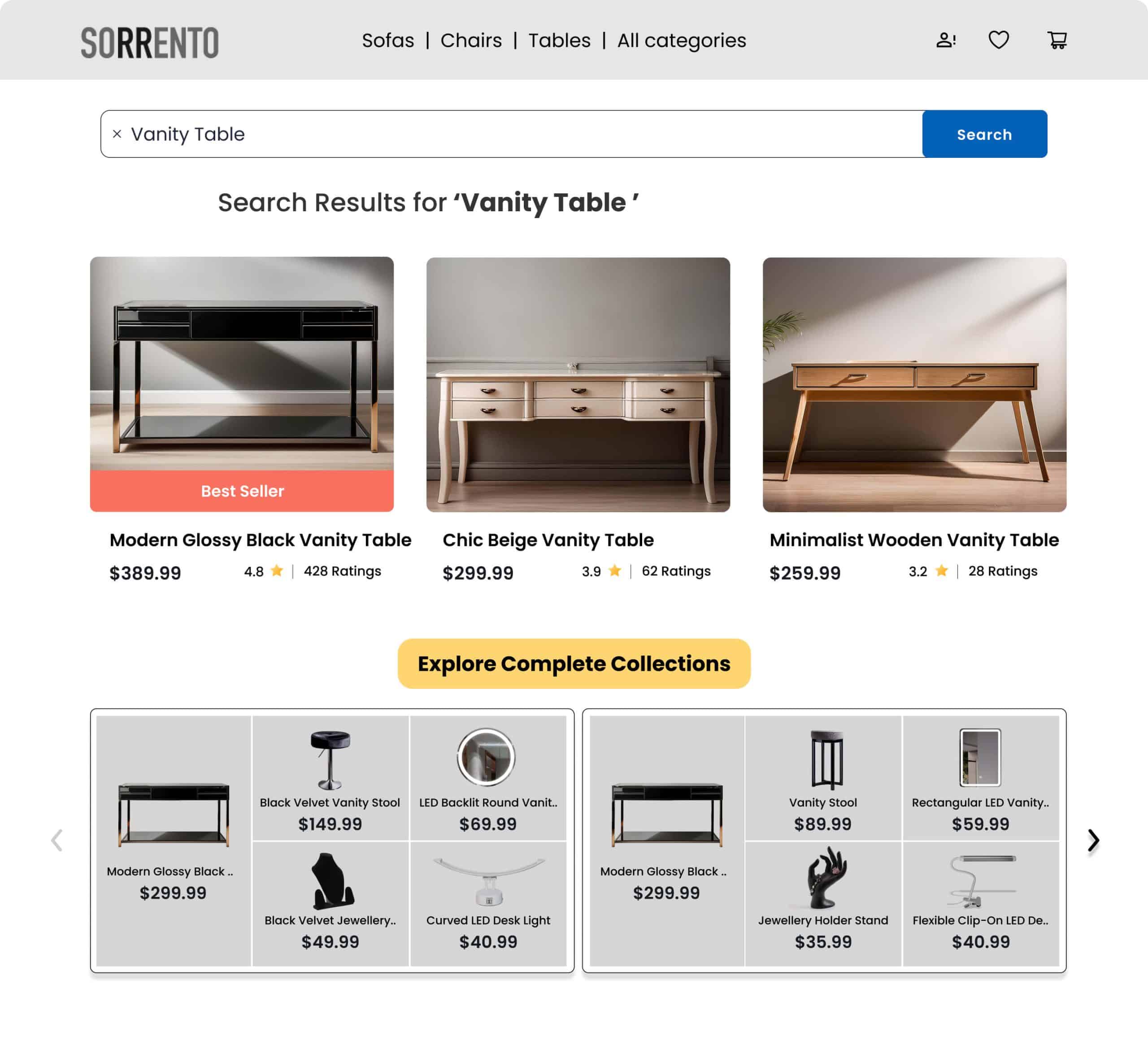 Feature dynamic collections on category pages that combine top-selling furniture or decor items with complementary pieces, making it easy for shoppers to discover trending home styles and setups.