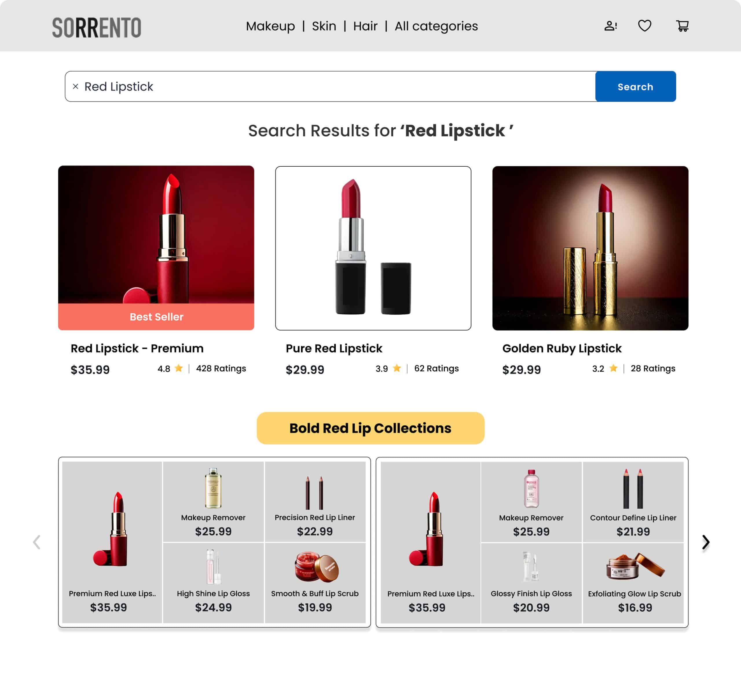 Spotlight trending beauty looks and curated collections within the search results, tailored to the shopper’s query. For example, when a shopper searches for “red lipstick,” display collections featuring a matching lip liner, gloss, and makeup remover, providing a cohesive look and encouraging further exploration.