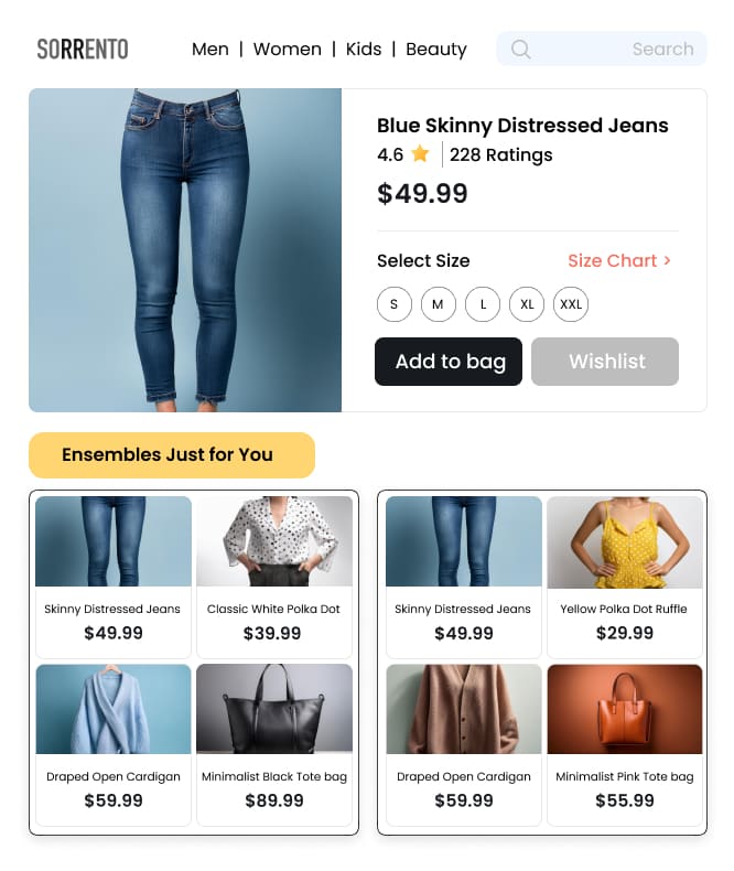 Delight returning shoppers with personalized ensembles.